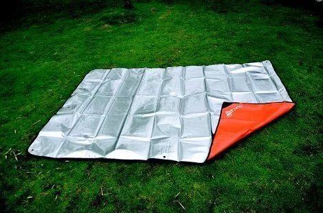 Многофункциональное покрывало с термоизоляцией Multi Purpose Emergency Blanket. Покрывало выполнено из прочного влагозащитного ветроустойчивого материала, отражающего до 80% излучаемого тепла от тела обратно. Для наибольшей прочности углы усилены люверсами, а края дополнительно окантованы. Оно может использоваться как покрывало для пикника, как подстилка  под палатку или как спасательное одеяло, позволяющее сохранить своё собственное тепло в чрезвычайных ситуациях. Компактный размер делает его идеальным в качестве аварийного комплекта в вашем автомобиле. Изготовлено из полиэтиленовой пленки, алюминия и армирующего материала Astrolar.
